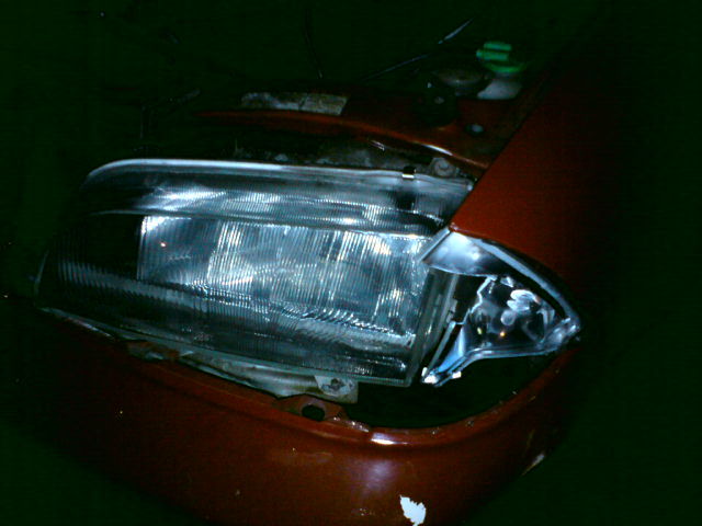 Beskrivelse: jeg var nede at handle med min svigersøn. dsa vi skulle hjem holdt en bil midt ude på vejen uden stop markering. så prøvede min svigersøn at undvige den. så kun positionssidelampen blev smadret. forlygten trykket ind og diverse lak skader ved kofangeren. det hvad der kan ske smilie