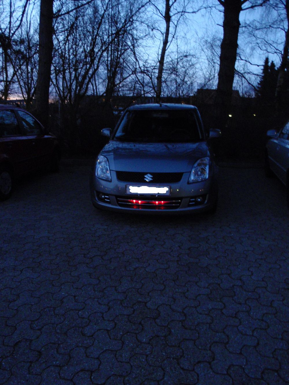 Just info: Det røde lys i kølergrilen er ulovligt - lys fremad må kun være hvidt el. gult.