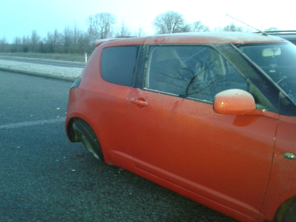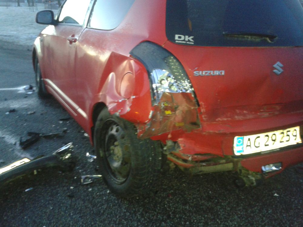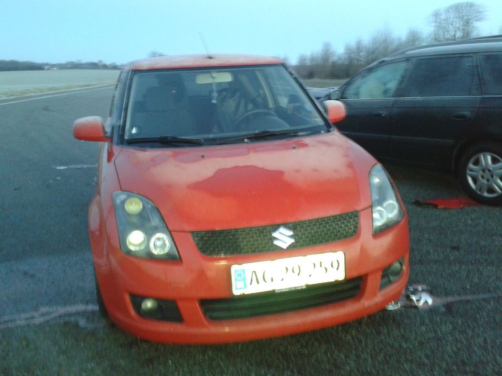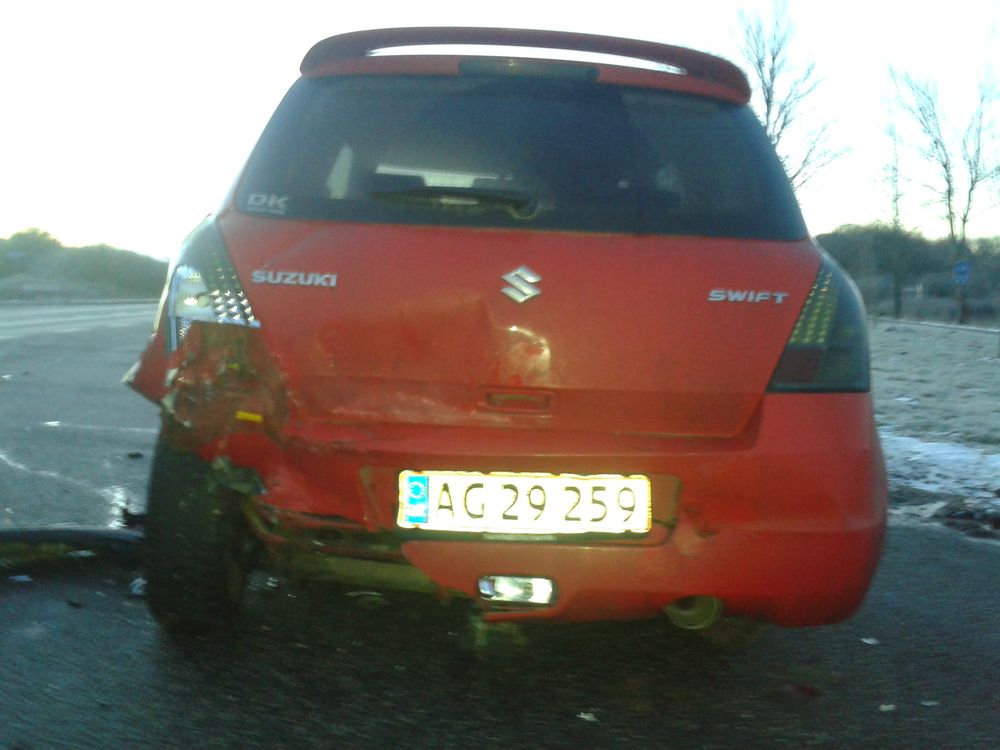 Beskrivelse: D. 04/02-15 afgik min kære swift døden :/ Jeg blev påkørt bagfra og slynget over i en kantsten og videre ind på en parkeringsplads. Bilen blev totalskadet, da hele bagbroen havde rykket sig og ville rende op i for mange penge i reparationer, end bilen var værd. Bilen kunne dog stadig kører i motoren, så den var heldigvis ikke død smilie